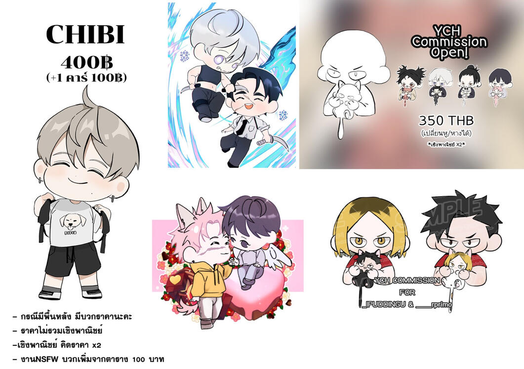 | Chibi + Colour | - | - | 250฿(+1 คาเเรคเตอร์ 100฿) |
